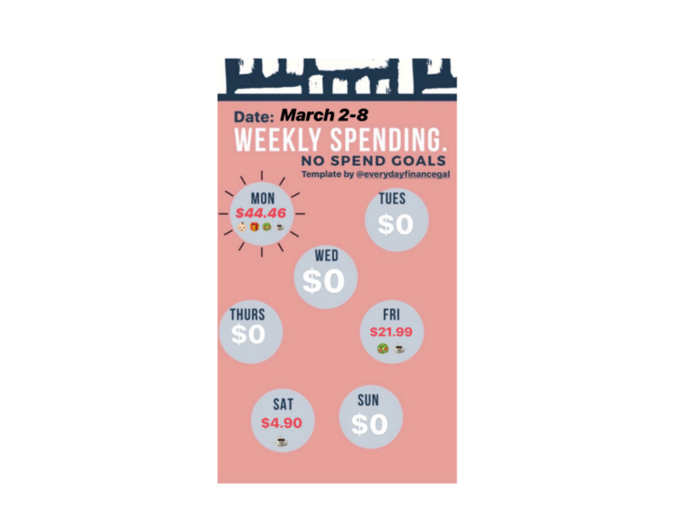 Track your weekly spend with this Tracker! Best used in Instagram Stories. See examples here: