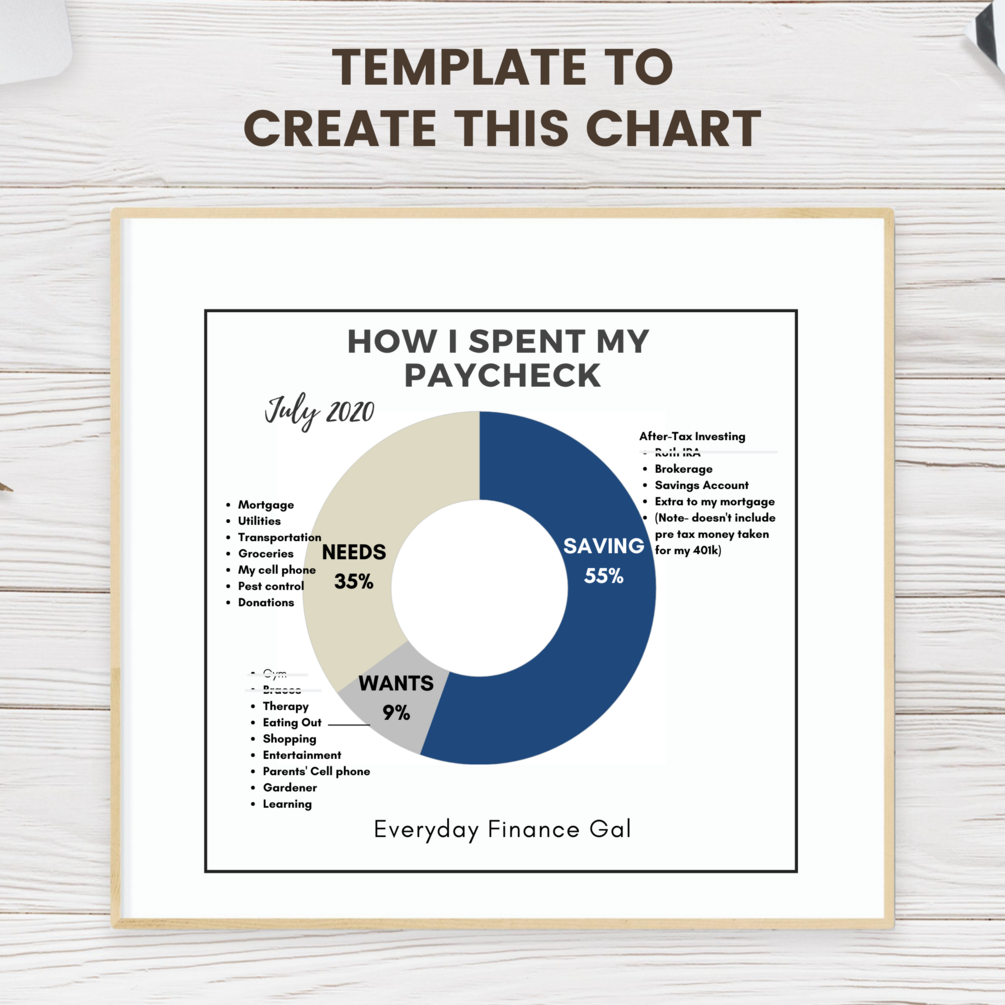Create a visual representation of how you spent your paycheck each month to encourage more Saving/Investing! Perfect way to add more content ideas on your Instagram page for your personal finance journey.